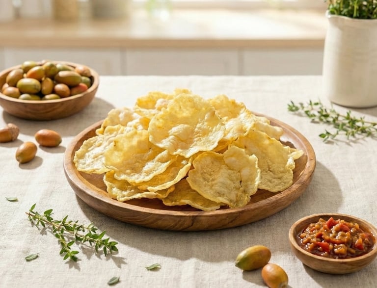 Crispy emping made from selected melinjo nuts, offering a light bitterness balanced with a satisfying crunch. A classic Indonesian snack enjoyed anytime.